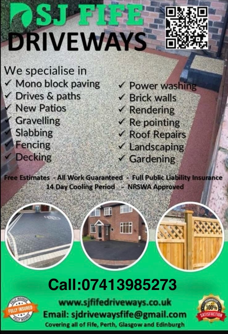 Here at SJ driveways Fife we are the third generation a family run business striving for the highest of standards and take pride in our work we treat your driveway/patio as if it was our own so you can have piece of mind while we’re on your property.
